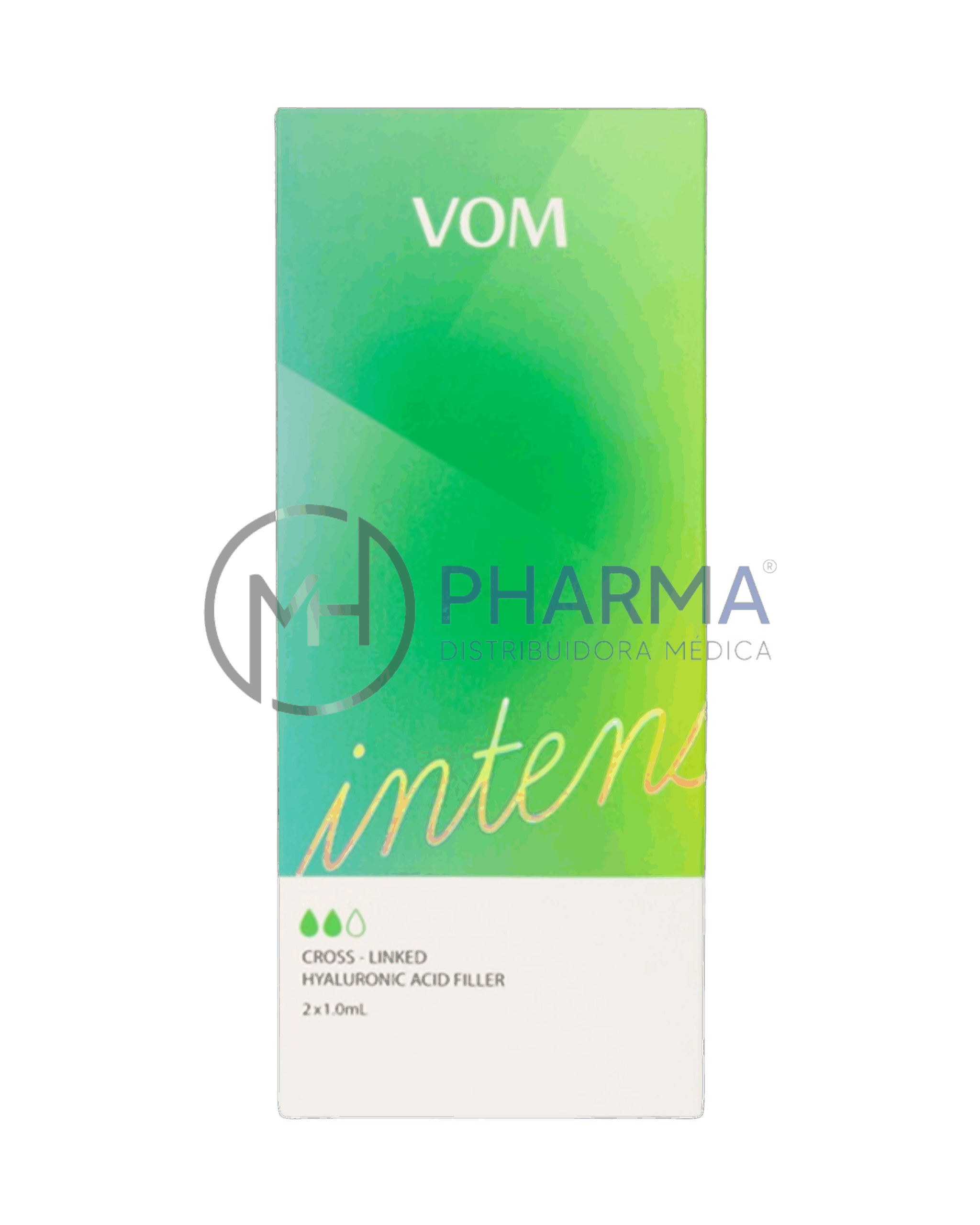 VOM Intense es un relleno basado en el ácido hialurónico para la corrección de arrugas con un grado de evidencia medio. Este producto posee una fórmula multifásica única fabricada mediante tecnología R2. Según ésta, el ácido hialurónico en la forma polimérica reticulada se coloca a las partículas de gel formando la solución con viscosidad y densidad óptimas.